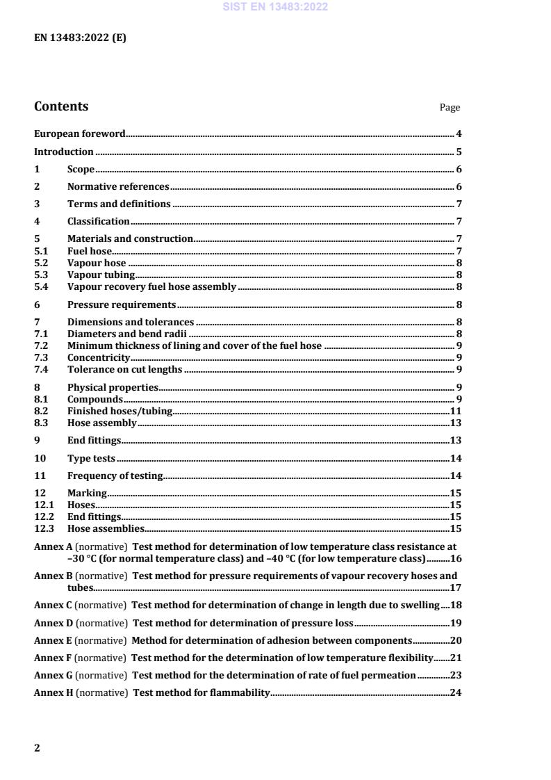 Keywords: EN 13483:2022, vapour recovery, fuel dispensing hoses, petrol filling stations, rubber hoses, TPE hose assemblies, pressure ratings, low temperature class, hose testing.