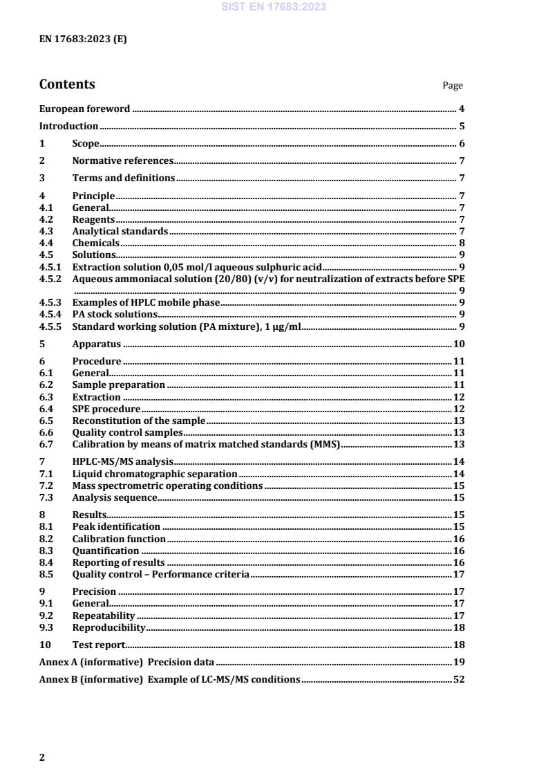 OPOMBA 2: Zaradi nezadostnega števila podatkov za nekatere kombinacije analita in matrike statistična ocena za standardizacijo ni bila veljavna. Pridobljeni rezultati so kazali uporabnost metod v izkušenih laboratorijih z ustrezno kakovostjo ukrepov za zagotavljanje kakovosti. Za to je opis metode vključen kot informativni dodatek (dodatek D).