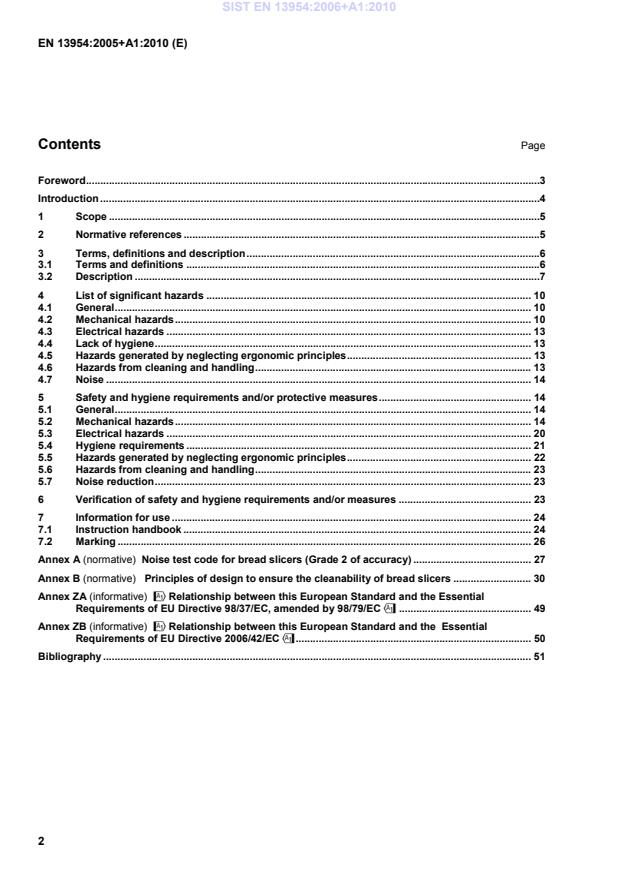 Essential Requirements of EU Directive 2006/42/EC" . 50Bibliography . 51 SIST EN 13954:2006+A1:2010