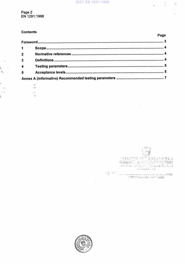 2003-01.Slovenski inštitut za standardizacijo. Razmnoževanje celote ali delov tega standarda ni dovoljeno.Neporušitvene preiskave zvarov - Preskušanje zvarov z magnetnimi delci - Stopnje sprejemljivostiZerstörungsfreie Prüfung von Schweißverbindungen - Magnetpulverprüfung von Schweißverbindungen - ZulässigkeitsgrenzenContrôle non destructif des assemblages soudés - Contrôle par magnétoscopie des soudures - Niveaux d'acceptat