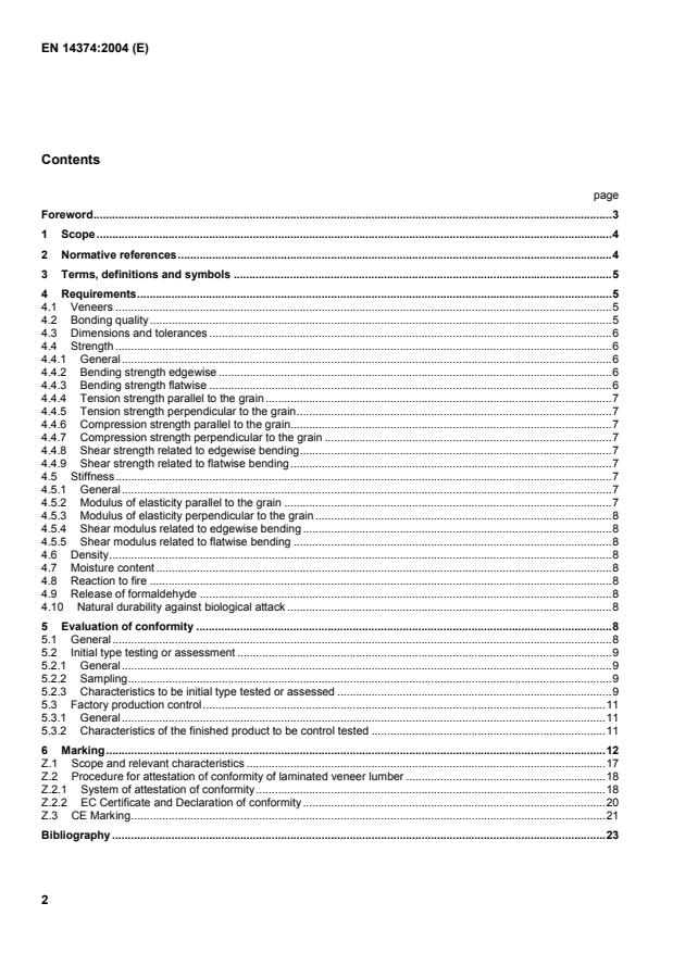 EN 14374:2004 is a standard published by the European Committee for Standardization (CEN). Its full title is "Timber structures - Structural laminated veneer lumber - Requirements". This standard covers: This document specifies the requirements for laminated veneer lumber for structural applications. The tests to be used, methods to carry out the evaluation of conformity and content of the marking of the product are given. This document does not cover laminated veneer lumber treated against biological attack or fire.