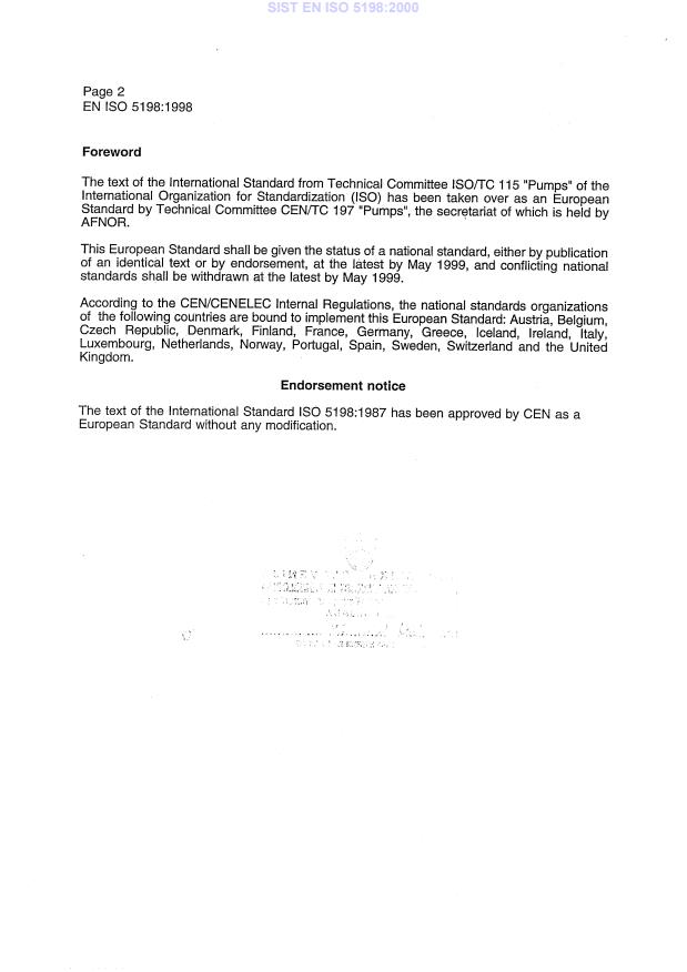 EN ISO 5198:1998 is a standard published by the European Committee for Standardization (CEN). Its full title is "Centrifugal, mixed flow and axial pumps - Code for hydraulic performance tests - Precision class (ISO 5198:1987)". This standard covers: Forms the first of a set dealing with tests of pumps and specifies precision class tests (former class A). Engineering class I and class II tests (former classes B and C) will be the subject of a further standard. Defines the terms and quantities that are used and specifies general requirements for tests. Does not specify constructional tolerances.