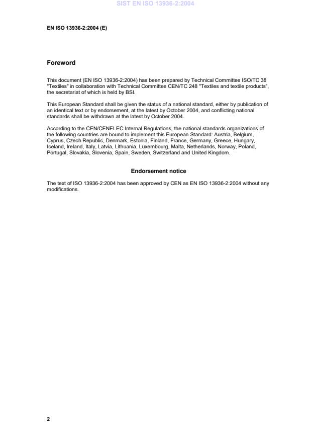 ISO 13936-2 was prepared by Technical Committee ISO/TC 38, Textiles, Subcommittee SC 24, Conditioning