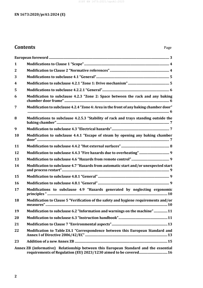 EN 1673:2020/FprA1 - published by CEN - specifies safety and hygiene requirements for rotary rack ovens used in professional food processing (bakeries, pastry-making, workshops). It covers design and manufacture of ovens that bake batches of foodstuffs containing flour, water and similar ingredients, where steam is generated by evaporation of drinking water on hot surfaces. The amendment (prA1) updates scope, normative references and technical requirements to reflect newer harmonized standards.