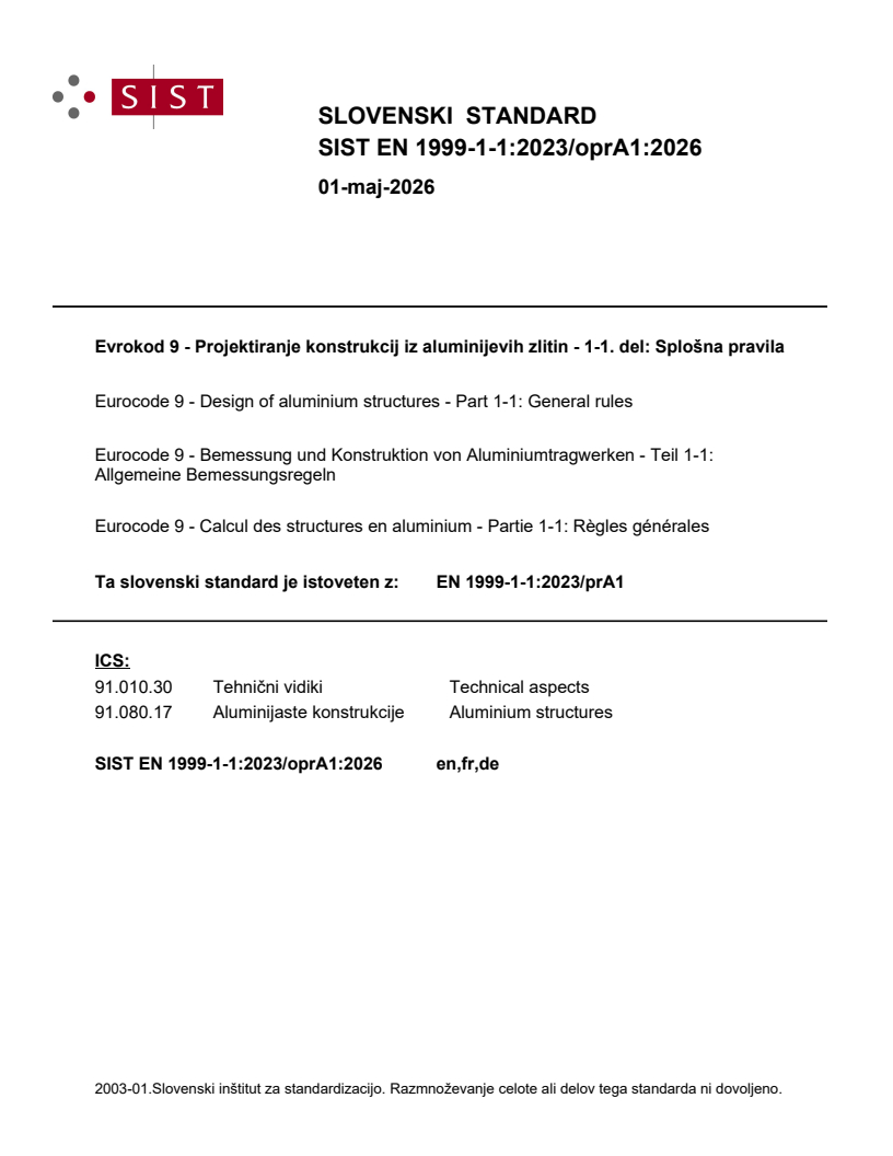 Keywords: Eurocode 9, EN 1999-1-1:2023/prA1, aluminium structures, structural design, CEN, building standards, aluminium alloys, connections, buckling, durability, civil engineering, Eurocodes, safety compliance.