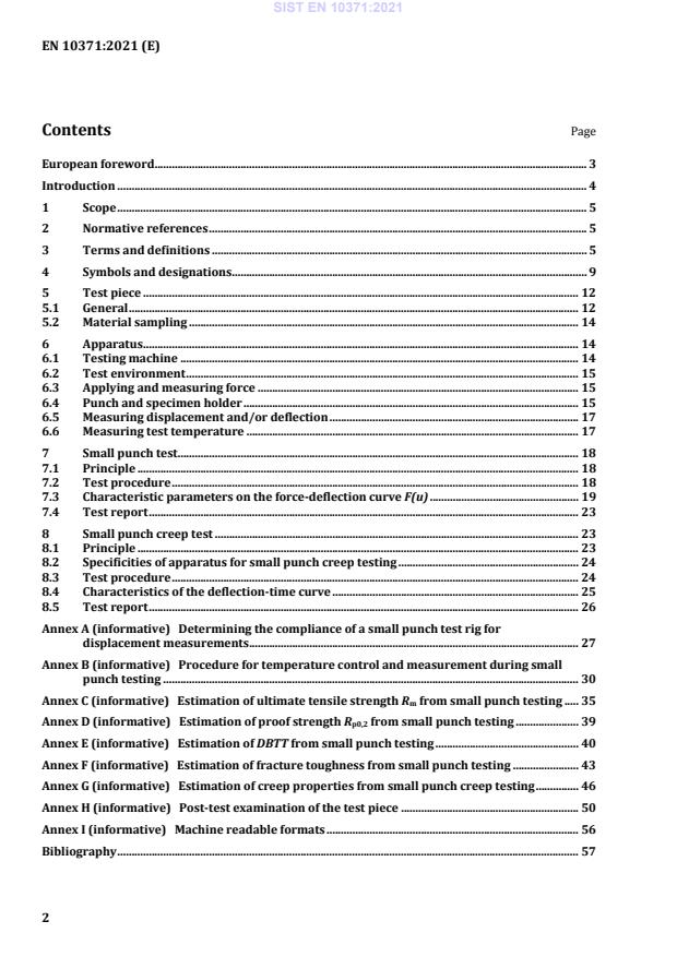 EN 10371:2021 - Metallic materials - Small punch test method is the CEN standard that specifies the small punch (SP) and small punch creep (SPC) testing techniques for metallic materials across temperatures from cryogenic up to high temperatures. The standard defines the test pieces, apparatus, test procedures and the interpretation of force–deflection and creep–deflection data to estimate tensile, creep and fracture-related material properties when only small amounts of material are available.