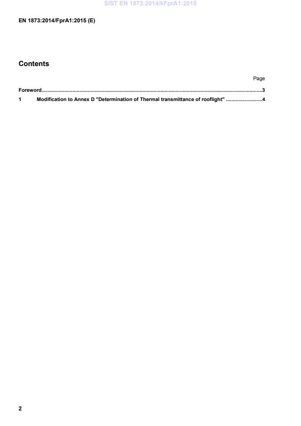 EN 1873:2014/FprA1:2015 is a draft published by the European Committee for Standardization (CEN). Its full title is "Prefabricated accessories for roofing - Individual rooflights of plastics - Product specification and test methods". This standard covers: This European Standard specifies requirements for rooflights made of plastic materials (e.g. GF-UP, PC, PMMA, PVC) and rooflights with upstands made of e.g. GF-UP, PVC, steel, aluminium or wood for installation in roofs. These rooflights serve the purpose of introducing daylight. This European Standard applies to rooflights with a rectangular or circular ground plan (see Figures 1 and 2), with an opening span (width) or diameter not larger than 2,5 m and an opening length not larger than 3,0 m in roof pitches up to 25°. This document does not cover rooflights which contribute to the load-bearing or stiffness of the roof itself. This European Standard applies to rooflights and rooflights with upstand, where a single manufacturer provides all components of the rooflight with upstand, which are bought in a single purchase. This European Standard applies to rooflights with one or several translucent parts. Rooflights may be opened by means of opening devices in one or more parts for ventilation. The possible additional functions of day to day ventilation, smoke and heat ventilation e.g. in case of fire in accordance with EN 12101 2, roof access, and/ or slinging point e.g. in accordance with EN 795 are outside the scope of this document. This European Standard does not include calculations with regard to construction, design requirements and installation techniques. NOTE Guidelines for safety, application, use and maintenance of individual rooflights are presented in Annex A.