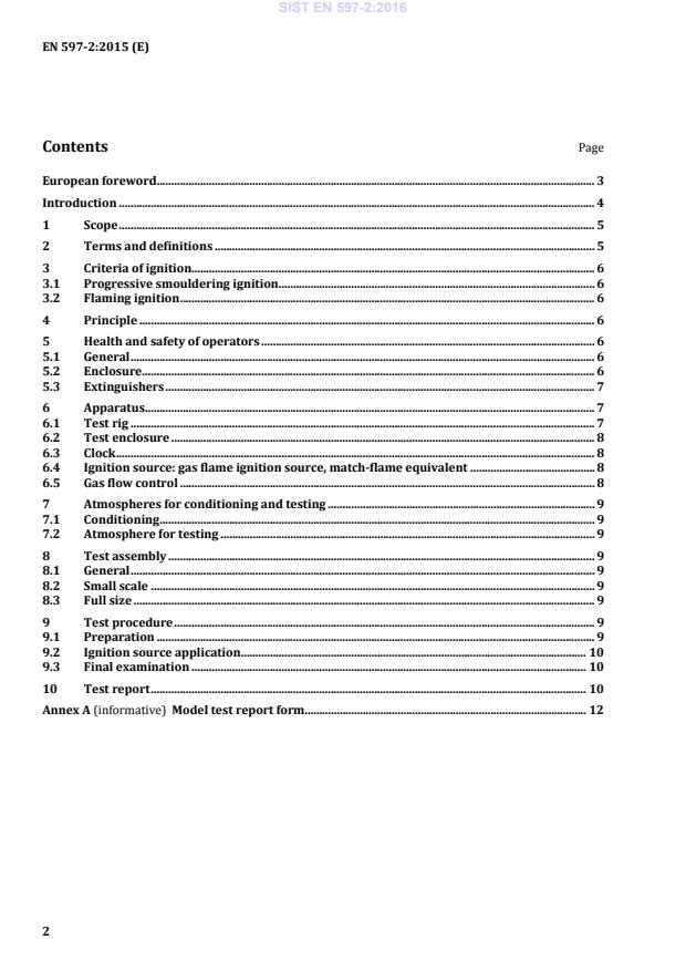 EN 597-2:2015 is a standard published by the European Committee for Standardization (CEN). Its full title is "Furniture - Assessment of the ignitability of mattresses and upholstered bed bases - Part 2: Ignition source: match flame equivalent". This standard covers: This European Standard specifies a test method to assess the ignitability of mattresses, upholstered bed bases, when subjected to a gas flame as an ignition source. Air mattresses and water beds are excluded from this standard. The standard contains one annex: Annex A (informative) Model test report form.