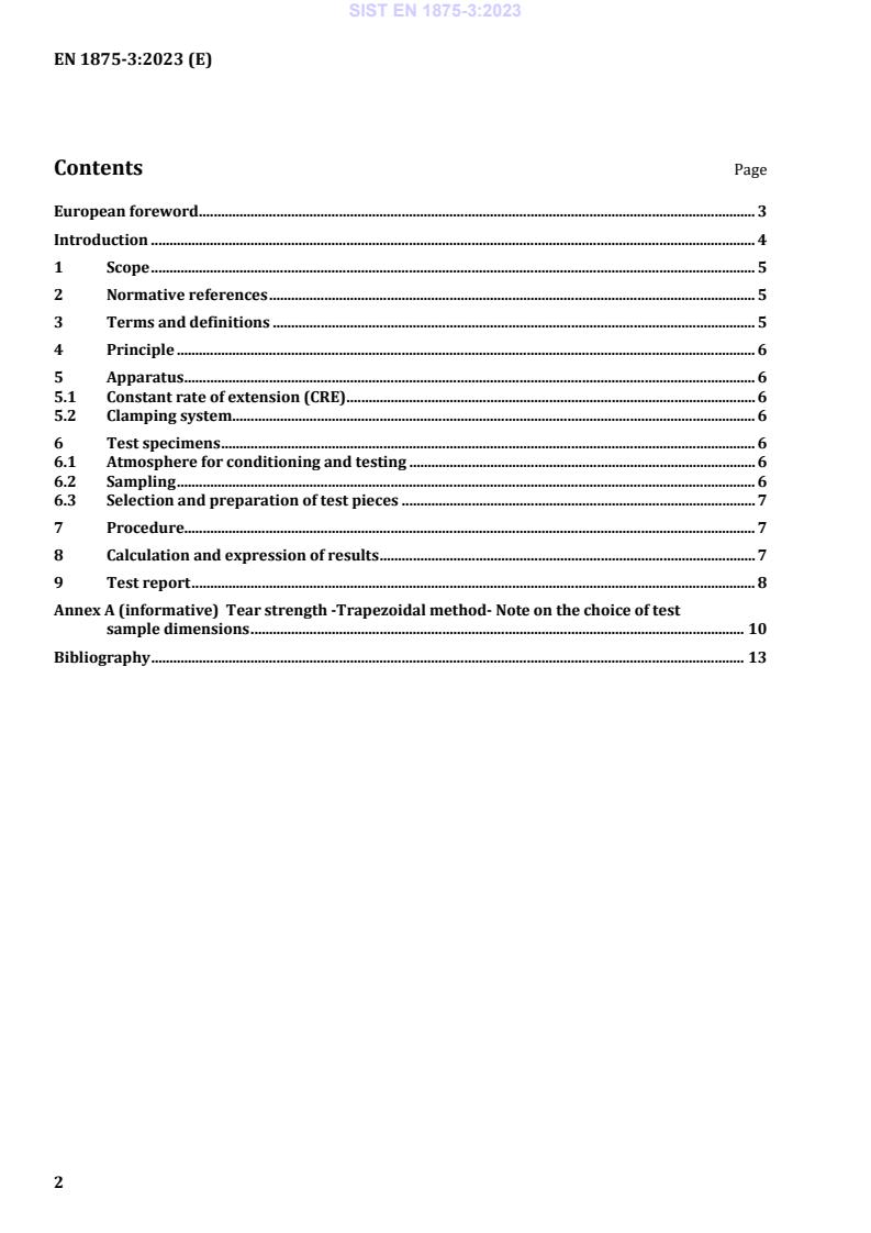 Keywords: EN 1875-3:2023, tear strength test, trapezoidal method, five-highest-peak calculation, coated fabrics, tensile testing machine, conditioning atmosphere, specimen preparation, textile testing.