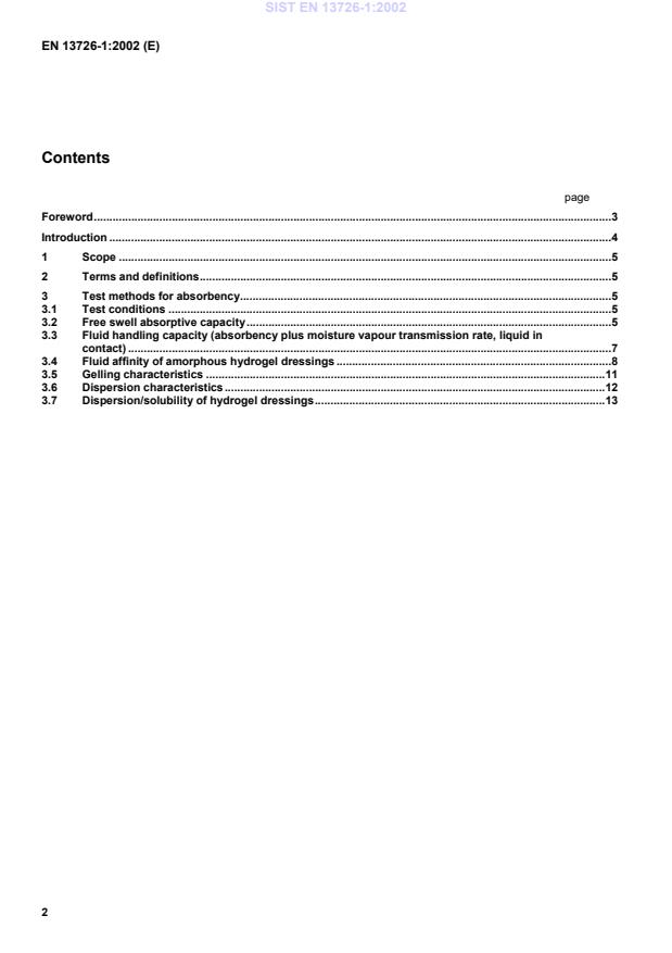 EN 13726 will consist of the following parts under the general title Test methods for primary wound dressings: