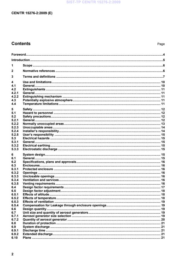 CEN/TR 15276-2:2009 is a technical report published by the European Committee for Standardization (CEN). Its full title is "Fixed firefighting systems - Condensed aerosol extinguishing systems - Part 2: Design, installation and maintenance". This standard covers: This document specifies requirements and describes the methods for the design, installation, testing, maintenance and safety of condensed aerosol extinguishing systems and the characteristics of the extinguishant media and types of fire for which it is a suitable extinguishing medium. This document also covers the use of condensed aerosol extinguishing systems for total flooding applications in normally unoccupied and unoccupiable areas, primarily related to buildings, plant and other specific applications, utilising electrically non-conducting aerosol fire extinguishants and for which there are sufficient data available to enable validation of performance characteristics by an appropriate independent authority. This document is intended as a standard covering solely condensed aerosol. This document is not applicable to explosion suppression applications. This document is not intended to indicate approval of the extinguishants listed herein by the appropriate authorities, as other extinguishants may be equally acceptable. This document is applicable to the extinguishants which fulfil CEN/TR 15276-1.