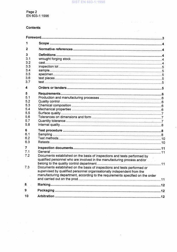 EN 603-1 is Part 1 of a series addressing forging stock; related standards typically cover more detailed chemical composition, mechanical property requirements, specific product forms, or later parts of the forging-stock series. For contractual and certification work, use EN 603-1 together with applicable product- and alloy-specific standards and national adoption documents.