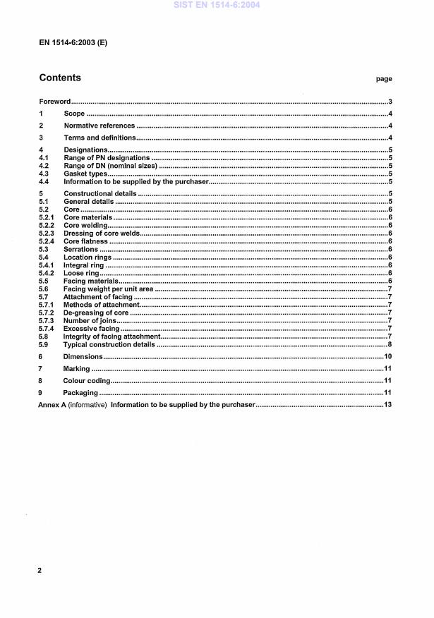 EN 1514-6:2003 is a standard published by the European Committee for Standardization (CEN). Its full title is "Flanges and their joints - Dimensions of gaskets for PN-designated flanges - Part 6: Covered serrated metal gaskets for use with steel flanges". This standard covers: This European Standard specifies the construction, dimensions and marking of covered serrated metal gaskets for use with flanges complying with EN 1092-1 for PN 10, PN 16, PN 25, PN 40, PN 63 and PN 100 up to and including DN 3000. This document does not extend to covered serrated metal based heat exchanger gaskets with pass bars or large vessel gaskets but, in the lack of a dedicated document for such gaskets, the principles set down can be applied to them. NOTE 1 Dimensions of other types of gaskets for use with flanges to EN 1092-1, EN 1092-2, prEN 1092-3 and EN 1092-4 are given in EN 1514-1, EN 1514-2, EN 1514-3, EN 1514-4, prEN 1514-7 and prEN 1514-8. NOTE 2 Annex A lists information that should be supplied by the purchaser when ordering gaskets in circumstances where the choice of the gasket materials appropriate to the service is left to the supplier.