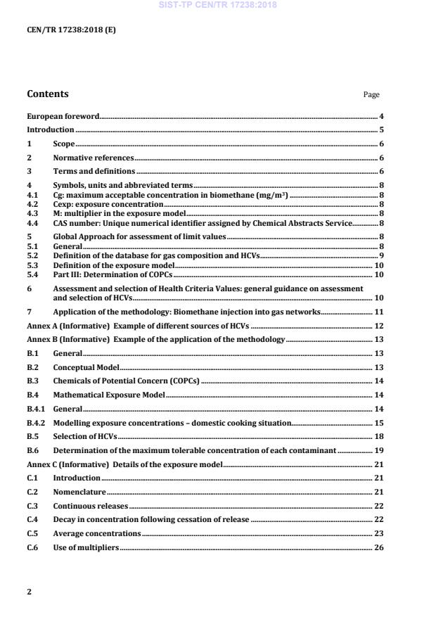 Keywords: CEN/TR 17238, biomethane contaminants, limit values biomethane, Health Criteria Value (HCV), Chemicals of Potential Concern (COPC), biomethane injection, gas network entry, exposure model.