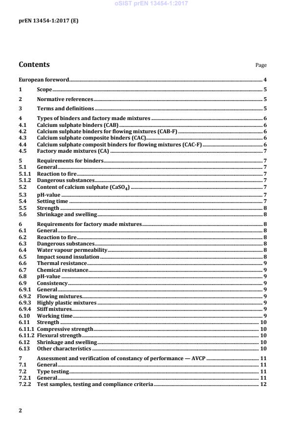 - Scope and terminology: precise definitions for calcium sulphate constituents, additives, admixtures, aggregates and screed types.