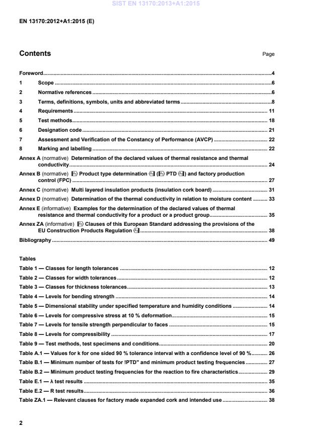............................................................................................................................... 35 Table E.2 — R test results ............................................................................................................................... 36 Table ZA.1 — Relevant clauses for factory made expanded cork and intended use ............................... 38 SIST EN 13170:2013+A1:2015