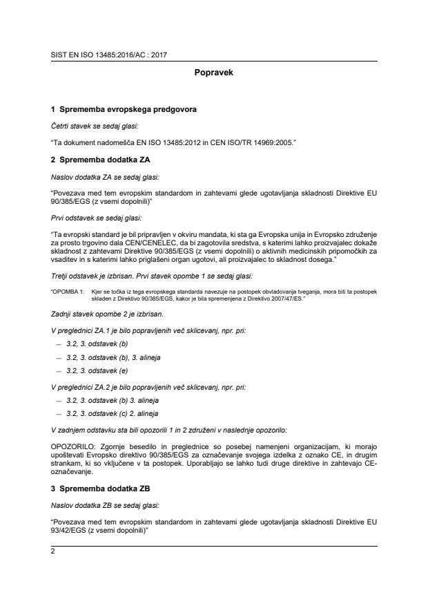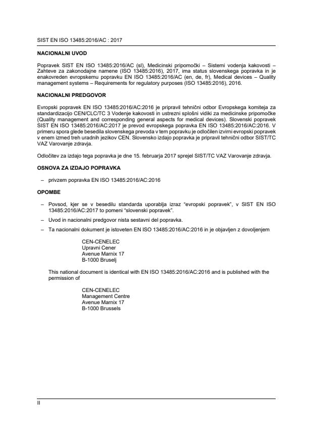 – Ta nacionalni dokument je istoveten EN ISO 13485:2016/AC:2016 in je objavljen z dovoljenjem