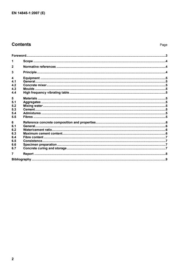 Keywords: EN 14845-1:2007, reference concrete, fibres in concrete, test methods, flexural tensile strength, water/cement ratio, mix design, specimen preparation, curing.