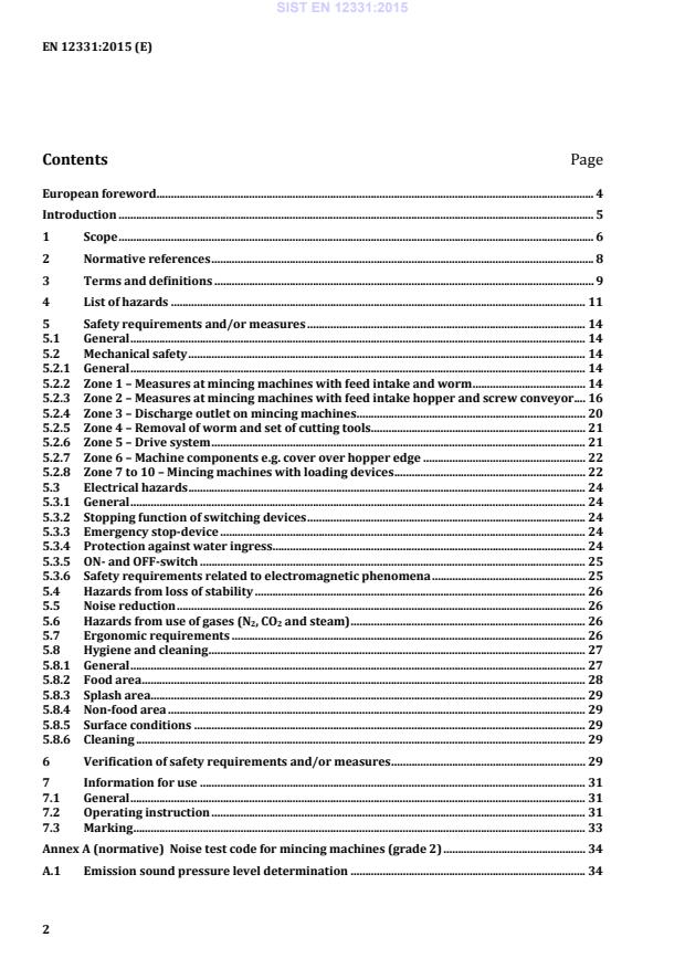 Design principles to ensure cleanability of mincing machines . 36 B.1 Definition . 36 B.2 Materials . 36 B.2.1 General . 36 B.2.2 Type of materials . 37 B.3 Design . 37 B.3.1 General . 37 B.3.2 Food area . 37 B.3.3 Splash area . 38 B.3.4 Non-food area . 40 Annex ZA (informative)