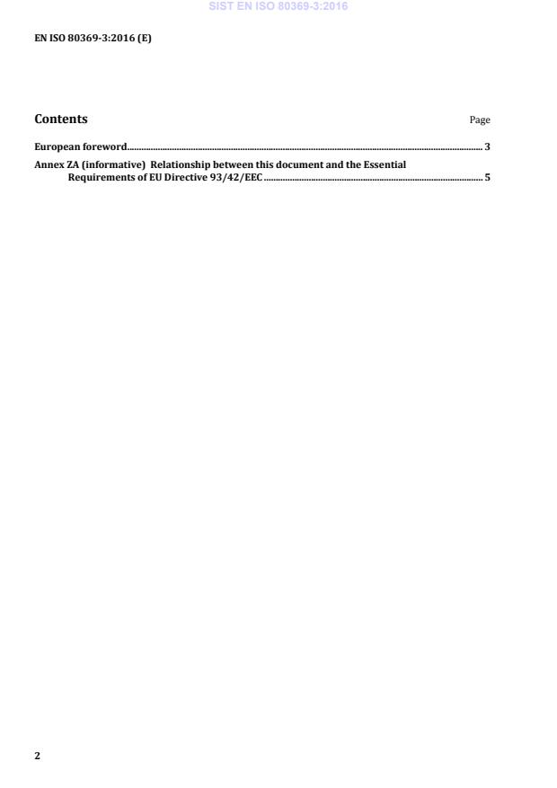 - Normative references and regulatory alignment: Cross-references ISO 80369-1 and other standards; includes Annex ZA describing relationship to EU Directive 93/42/EEC (medical device essential requirements).
