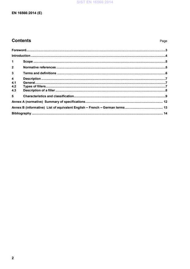EN 16566:2014 defines the information and test methods needed to classify and communicate filler properties. Important technical topics include: