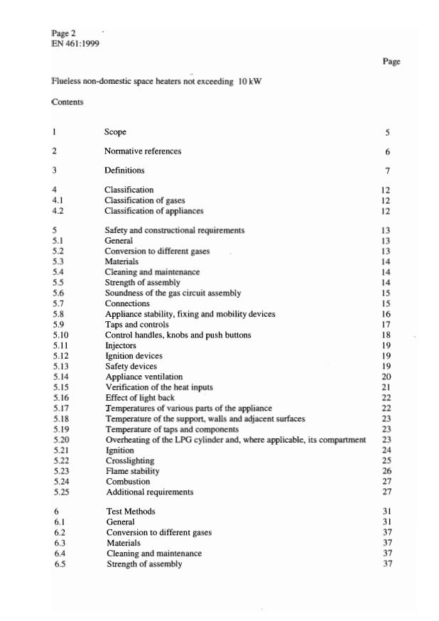 Keywords: EN 461:1999, flueless non-domestic space heaters, liquefied petroleum gas, LPG heaters, 10 kW, type examination, test methods, greenhouse heaters, catalytic combustion heaters.