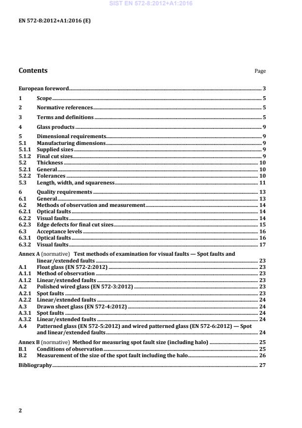 Ta evropski standard določa zahteve glede mer in minimalne kakovosti (v zvezi z optičnimi in vizualnimi napakami) za osnovne izdelke iz natrij-kalcijevega silikatnega stekla, kot so določeni v standardu EN 572-1:2012, za uporabo v gradbeništvu. Nanaša se na dobavljene velikosti in velikosti razreza za končno uporabo.