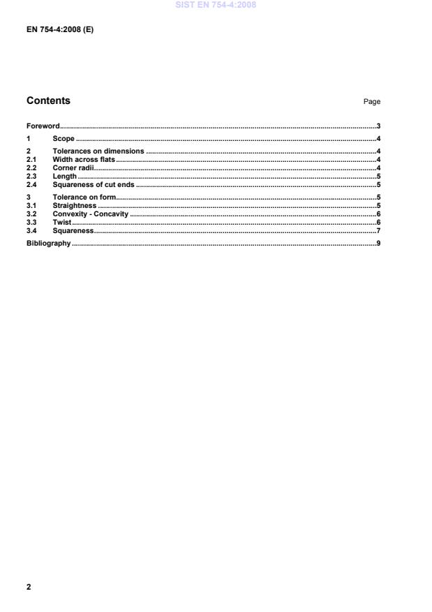 Keywords: EN 754-4:2008, aluminium square bars, cold drawn, tolerances on dimensions and form, width across flats, corner radii, straightness, twist, squareness, EN 515, CEN.