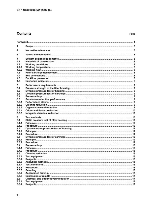 Keywords: EN 14898, active media filters, water conditioning equipment, drinking water filtration, filter performance testing, pressure test, chlorine reduction, CEN standard.