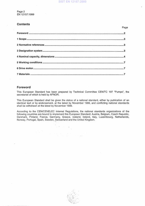 EN 12157:1999 is a CEN (European Committee for Standardization) standard that defines the dimensional requirements and nominal flow rates for rotodynamic coolant pump units used on machine tools. It covers electrical motor driven, sump and suction type coolant pump units with nominal capacities from 20 litres/min to 250 litres/min. The standard applies to pump units used for machine tool coolant systems and excludes positive displacement pump designs.