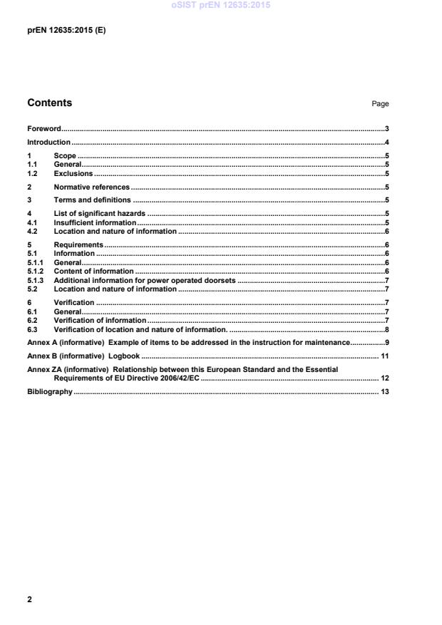 The structure (content) of EN 12635 has been revised according to standardization templates: