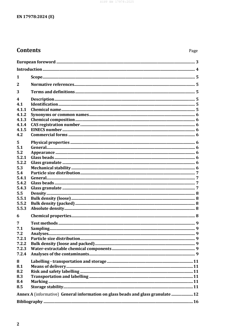 Keywords: EN 17978, glass beads, glass granulate, water treatment, drinking water, swimming pool filtration, particle size distribution, bulk density, chemical composition, CEN standard.
