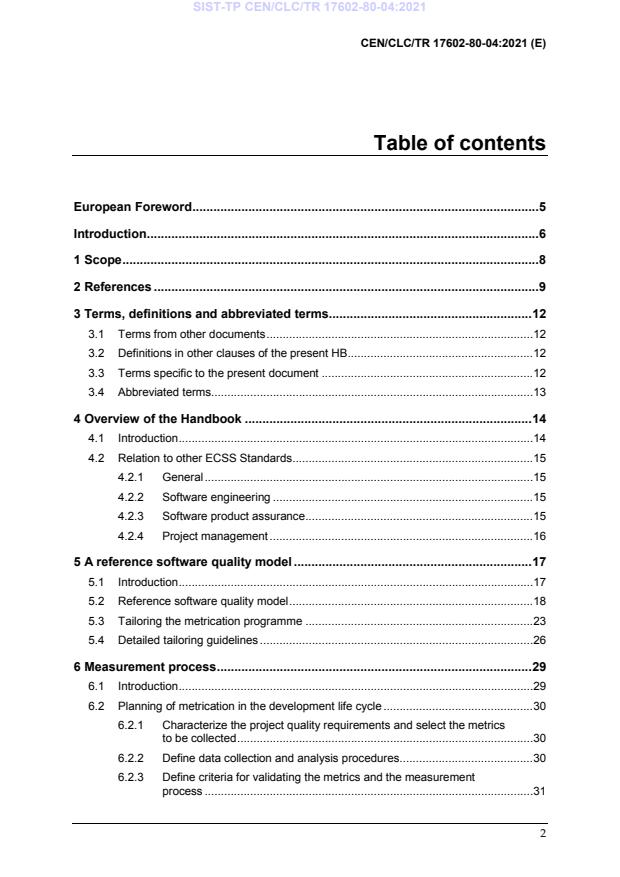 The scope of this Handbook is the software metrication as part of a space project, i.e. a space system, a subsystem including hardware and software, or ultimately a software product. It is intended to complement the EN 16602-80 (equivalent to ECSS-Q-ST-80) with specific guidelines related to use of different software metrics including their collection, analysis and reporting. Tailoring guidelines for the software metrication process are also provided to help to meet specific project requirements. This Handbook provides recommendations, methods and procedures that can be used for the selection and application of appropriate metrics, but it does not include new requirements w ith respect to those provided by EN 16602-80 (equivalent to ECSS-ST-Q-80). The scope of this Handbook covers the following topics: • Specification of the goals and objectives for a metrication programme. • Identification of criteria for selection of metrics in a specific project / environment (goal driven). • Planning of metrication in the development life cycle. • Interface of metrication with engineering processes. • Data collection aspects (including use of tools). • Approach to the analysis of the collected data. • Feedback into the process and product based on the analysis results. • Continuous improvement of measurement process. • Use of metrics for process and product improvement. This Handbook is applicable to all types of software of all major parts of a space system, including the space segment, the launch service segment and the ground segment software.