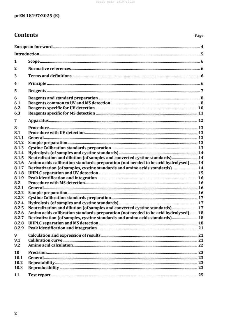 Es legt ein Verfahren für die quantitative Bestimmung der folgenden Aminosäuren in einer einzigen Analyse fest: Alanin, Arginin, Asparaginsäure (kombiniert mit Asparagin), Cystin (Dimer von Cystein, kombiniert mit Cystein), Glutaminsäure (kombiniert mit Glutamin), Glycin, Histidin, Isoleucin, Leucin, Lysin, Methionin, Phenylalanin, Prolin, Serin, Threonin, Tyrosin und Valin.