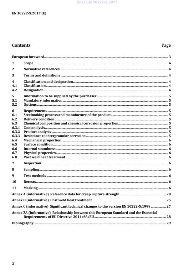 — Part 1: General requirements for open die forgings — Part 2: Ferritic and martensitic steels with specified elevated temperature properties — Part 3: Nickel steels with specified low temperature properties — Part 4: Weldable fine grain steels with high proof strength — Part 5: Martensitic, austenitic and austenitic-ferritic stainless steels. Annex C provides details about significant technical changes to EN 10222-5:1999. According to the CEN-CENELEC Internal Regulations, the national standards organisations of the following countries are bound to implement this European Standard: Austria, Belgium, Bulgaria, Croatia, Cyprus, Czech Republic, Denmark, Estonia, Finland, Former Yugoslav Republic of Macedonia, France, Germany, Greece, Hungary, Iceland, Ireland, Italy, Latvia, Lithuania, Luxembourg, Malta, Netherlands, Norway, Poland, Portugal, Romania, Serbia, Slovakia, Slovenia, Spain, Sweden, Switzerland, Turkey and the United Kingdom. SIST EN 10222-5:2017