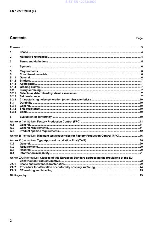 EN 13036-1 (see Table 1). If the site configuration permits then EN ISO 11819-1 may be used. 5.3 Durability 5.3.1 General Slurry surfacing prepared in accordance with this European Standard is deemed to be durable for a reasonable economic working life. Durability of slurry surfacing is demonstrated by the Type Approval Installation Trial (TAIT). NOTE The effect of changes in traffic levels, climate, substrate etc., prevents exact prediction of lifetime. 5.3.2 Skid resistance 5.3.2.1 General Durability of skid resistance shall be demonstrated by means of measurement of polished stone value (PSV) in accordance with EN 13043 together with a measurement of macro-texture in accordance with EN 13036-1. 5.3.2.2 Polished stone value (PSV) Polished stone value shall be declared in accordance with EN 13043. NOTE Different categories can be used for different intended uses. 5.3.2.3 Macro-texture Macro-texture shall be declared in accordance with 5.2.2. 5.3.3 Bond Bond shall be evaluated in accordance with 5.2.1. NOTE Test methods for bond are being developed. 6 Evaluation of conformity Evaluation of conformity shall be demonstrated by: Type Approval Installation Trial (TAIT) in accordance with Annex C. Factory Production Control (FPC) in accordance with Annex A. SIST EN 12273:2009