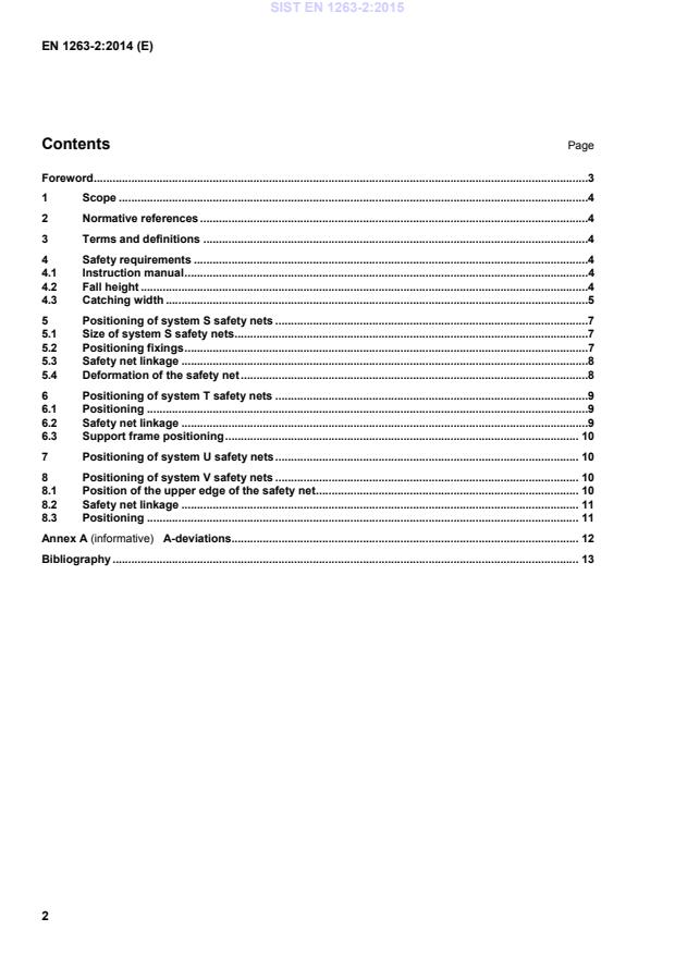This European Standard specifies safety requirements for the positioning of safety nets in accordance with the manufacturer's instruction manual and with the product specifications and for the testing of system S, system T, system U and system V safety nets in accordance with EN 1263 1. Small safety nets of system S according to EN 1263 1 (less than 35 m2 and 5,0 m on the shortest side) are not dealt with in this European Standard.