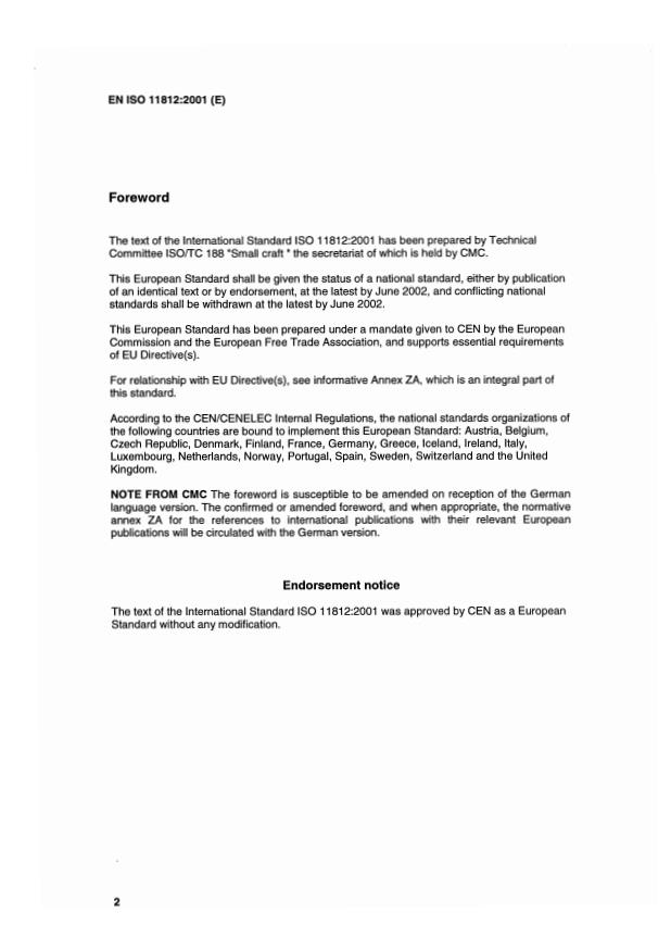 EN ISO 11812:2001 is classified under the following ICS (International Classification for Standards) categories: 47.080 - Small craft. The ICS classification helps identify the subject area and facilitates finding related standards.