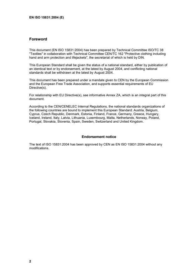 - ISO 15831 was prepared by ISO/TC 38 (Textiles) in collaboration with CEN/TC 162 (Protective clothing) and links to EU Directive 89/686 (PPE) via Annex ZA.