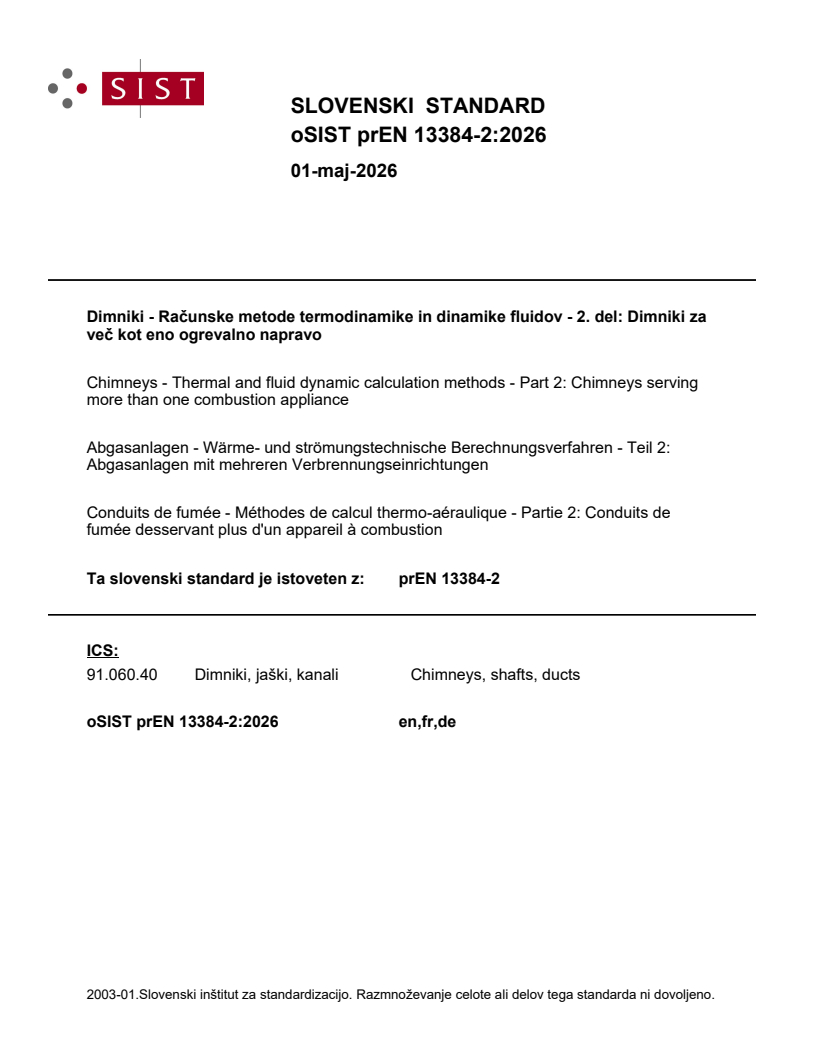 Ta dokument določa metode za izračun toplotnih in fluidnih dinamičnih značilnosti dimnikov, ki služijo več kot eni kurilni napravi.