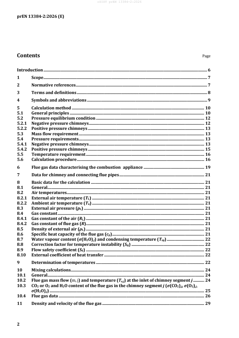 This part of prEN 13384 deals with chimneys operating under negative pressure conditions (there can be positive pressure condition in the connecting flue pipe) and with chimneys operating under positive pressure conditions and is valid for chimneys serving combustion appliances for liquid, gaseous and solid fuels.