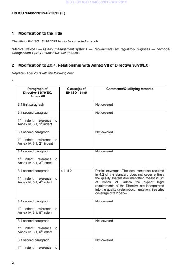 Die Berichtigung tritt am 4. Juli 2012 zur Einarbeitung in die drei offiziellen Sprachfassungen der EN in Kraft. CEN-CENELEC Management Centre: Avenue Marnix 17, B-1000 Brussels © 2012 CEN/CENELEC All rights of exploitation in any form and by any means reserved worldwide for CEN national Members and for CENELEC Members. Tous droits d'exploitation sous quelque forme et de quelque manière que ce soit réservés dans le monde entier aux membres nationaux du CEN et aux membres du CENELEC. Alle Rechte der Verwertung, gleich in welcher Form und in welchem Verfahren, sind weltweit den nationalen Mitgliedern von CEN und den Mitgliedern von CENELEC vorbehalten. Ref. No. EN ISO 13485:2012:EN ISO 13485:2012/AC:2012 D/E/F SIST EN ISO 13485:2012/AC:2012