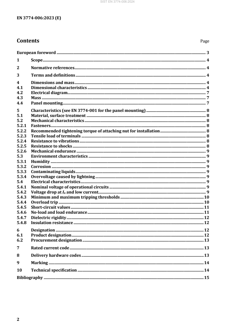 Keywords: EN 3774-006:2023, aerospace circuit breakers, three‑pole, temperature compensated, 6.3 blade terminal, aircraft on‑board circuits, trip‑free, rated currents 1 A to 25 A.