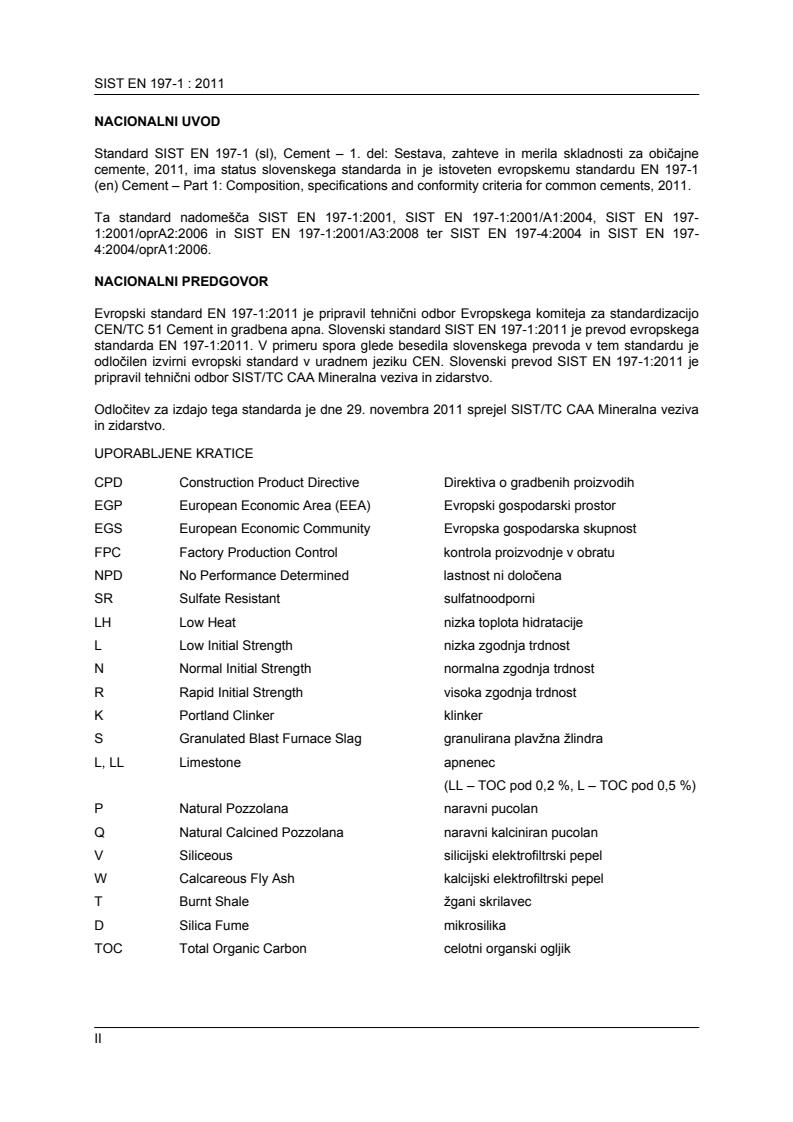 OPOMBA 2: Beseda “cement” se v EN 197-1 uporablja samo v zvezi z običajnimi cementi, če ni določeno drugače.