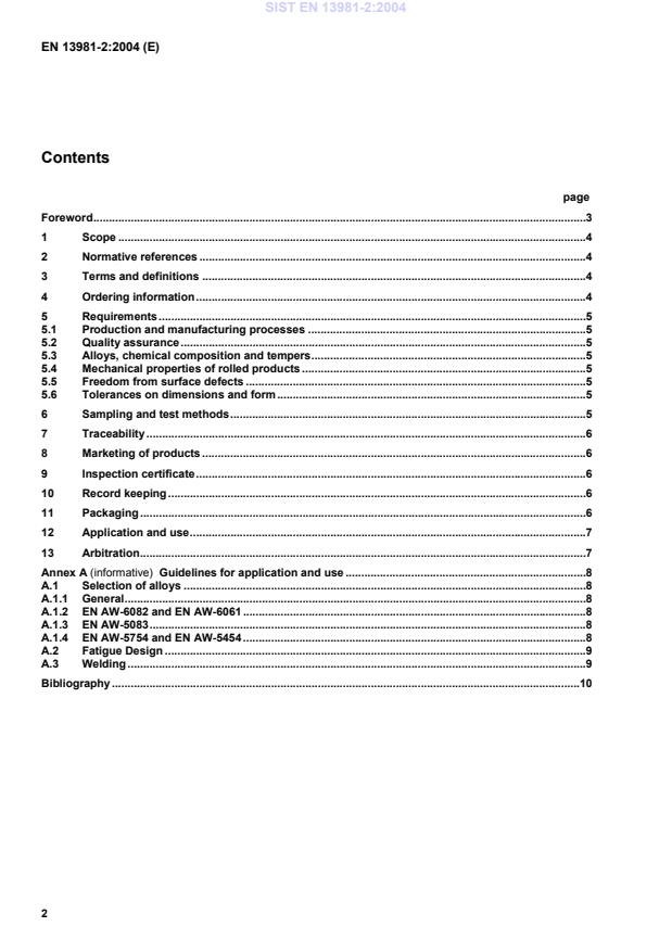 Guidelines for application and use.8 A.1 Selection of alloys.8 A.1.1 General.8 A.1.2 EN AW-6082 and EN AW-6061.8 A.1.3 EN AW-5083.8 A.1.4 EN AW-5754 and EN AW-5454.8 A.2 Fatigue Design.9 A.3 Welding.9 Bibliography.10 SIST EN 13981-2:2004