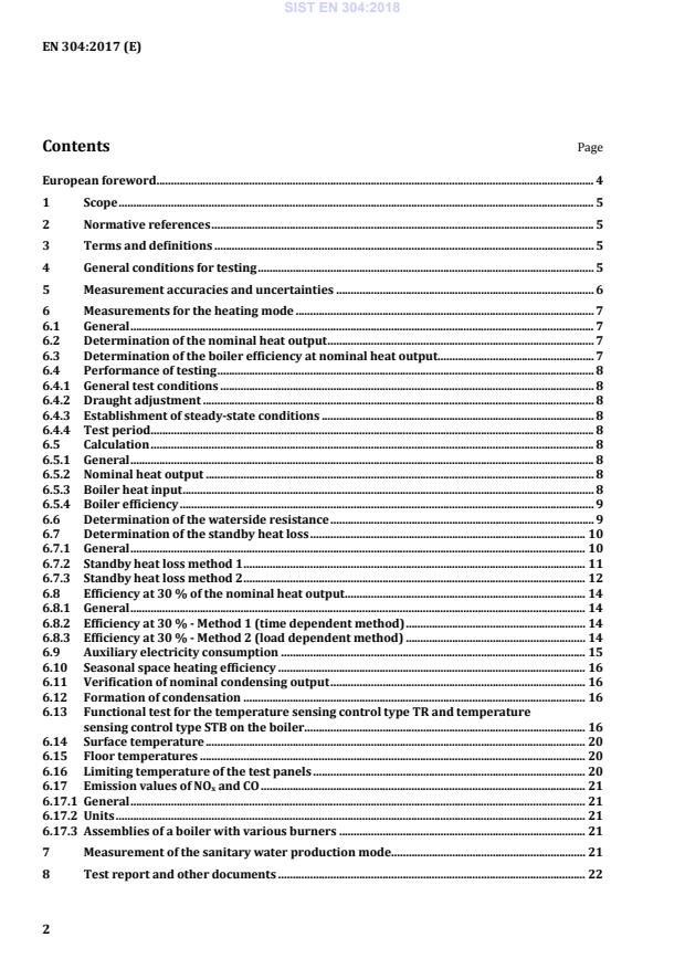 EN 304:2017 is a standard published by the European Committee for Standardization (CEN). Its full title is "Heating boilers - Test code for heating boilers for atomizing oil burners". This standard covers: This European Standard applies to the determination of the performances of heating boilers and combi boilers fired by liquid fuels. The requirements for the heating performances are laid down in EN 303 1:2016 and EN 303 2:2016. This test code includes the requirements and recommendations for carrying out and evaluating the procedure for testing boilers and also the details of the technical conditions under which the tests will be carried out. The requirements and the performance of testing for the sanitary hot water production of combi boilers are laid down in EN 303 6.