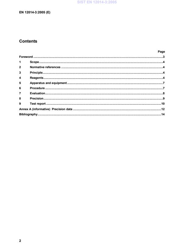 2) The ‘Nitrat’ test kit for the enzymatic determination of nitrate and nitrite is the trade name of a product produced by Boehringer Mannheim/Roche Diagnostics, Mannheim, supplied by r-biopharm, Darmstadt (Germany) This information is given for the convenience of users of this European Standard and does not constitute an endorsement by CEN of the product named. Equivalent products may be used if they can be shown to lead to the same results. 3) U, this unit (often called the International unit or standard unit) is defined as the amount of enzyme which catalyses the transformation of 1 µmol substrate per minute under standard conditions. SIST EN 12014-3:2005