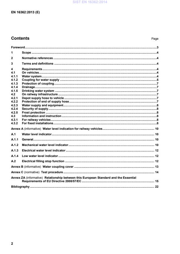 - Annex A: water level indication options; Annex B: coupling cover example; Annex C: test procedure; Annex ZA: linkage to EU Directive 2008/57/EC.