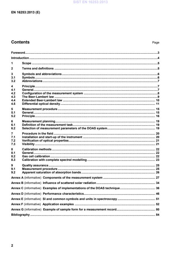 Ta evropski standard opisuje delovanje aktivnih merilnih sistemov DOAS z neprekinjenim virom sevanja, postopke za kalibracijo in aplikacije za določanje plinastih sestavin (npr. NO2, SO2, O3, BTX, Hg) v zunanjem zraku ali v razpršenih emisijah.
