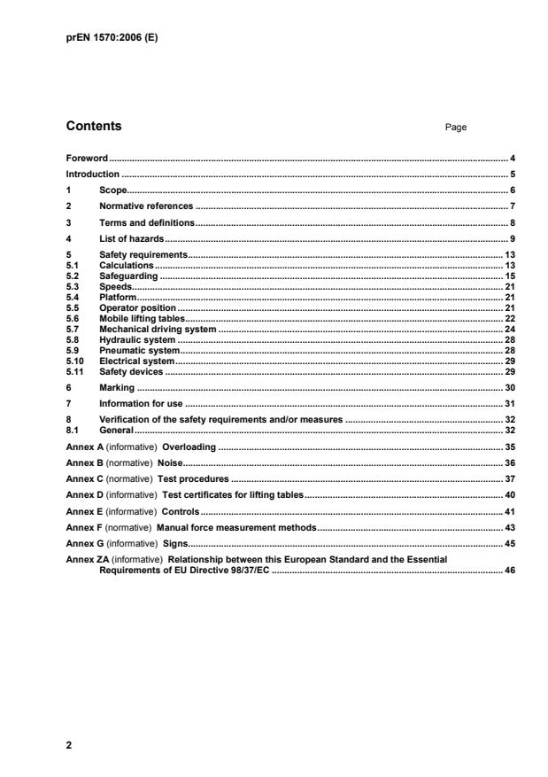 - Annex ZA links prEN 1570 to the Machinery Directive (98/37/EC) for conformity purposes.